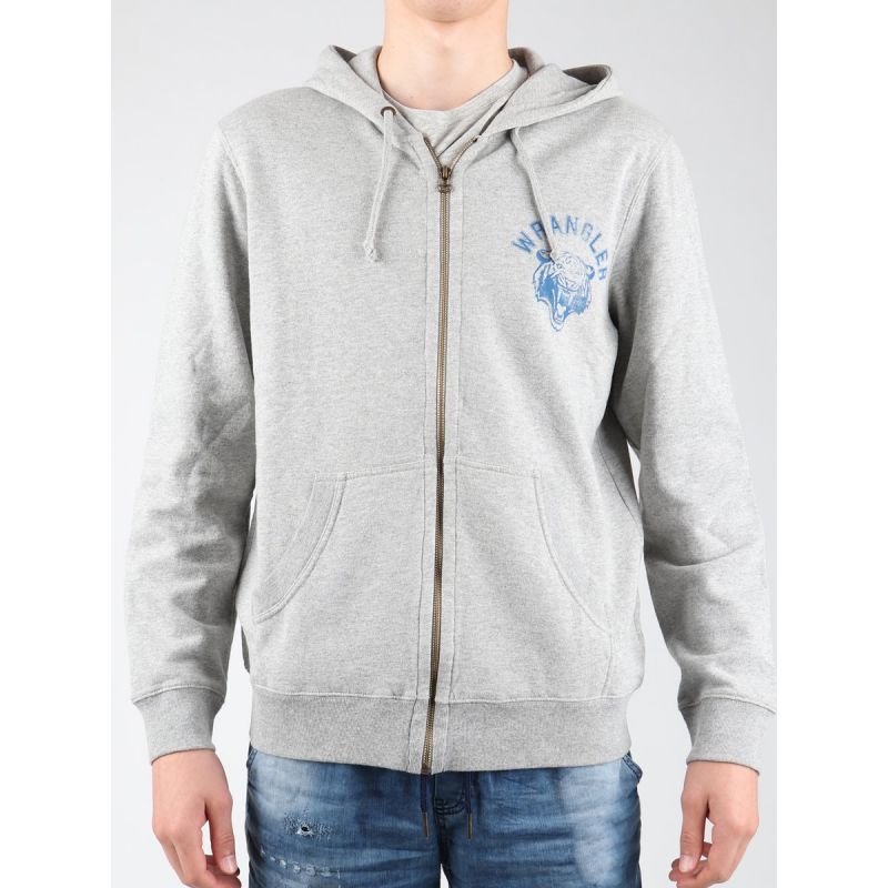 -Kapuzensweatshirt mit langen Ärmeln -Reißverschluss -2 Seitentaschen -Firmenname-Aufdruck an der Seite -Farbe: Mittelgrau Meliert -Material: 95% Baumwolle/ 5% Polyester