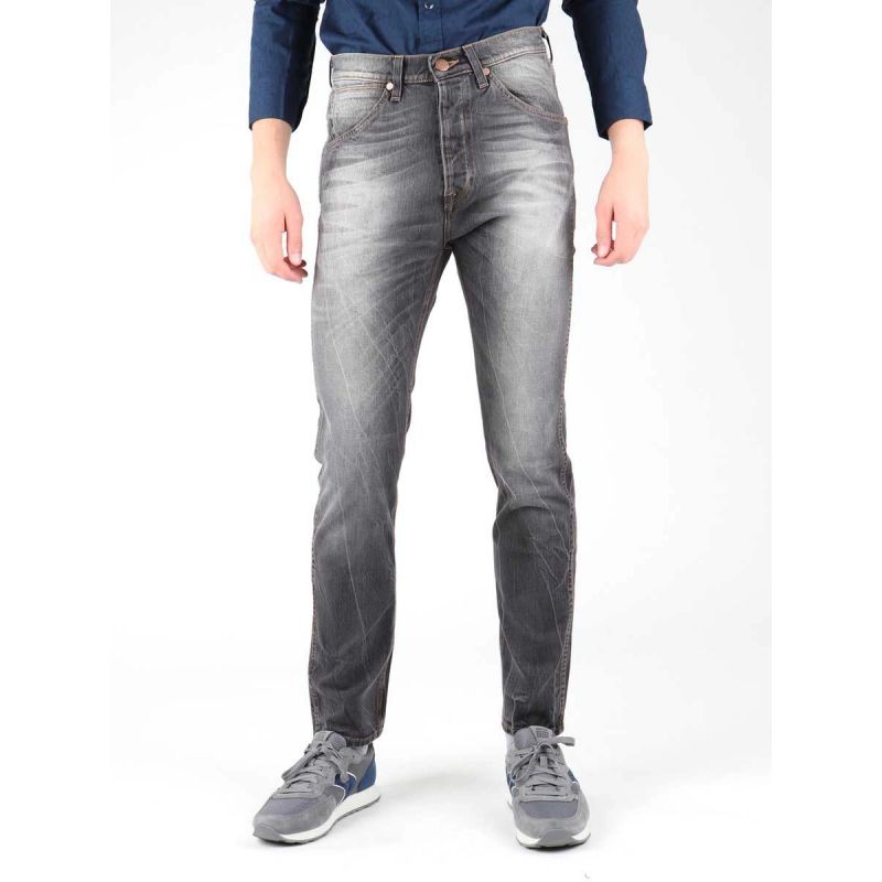 Tapered-Jeans für Herren mit Knopfverschluss. Große Vorder- und Gesäßtaschen. Wrangler-Logo aus Leder auf der Gesäßtasche. Material: 99% Baumwolle, 1% Elasthan