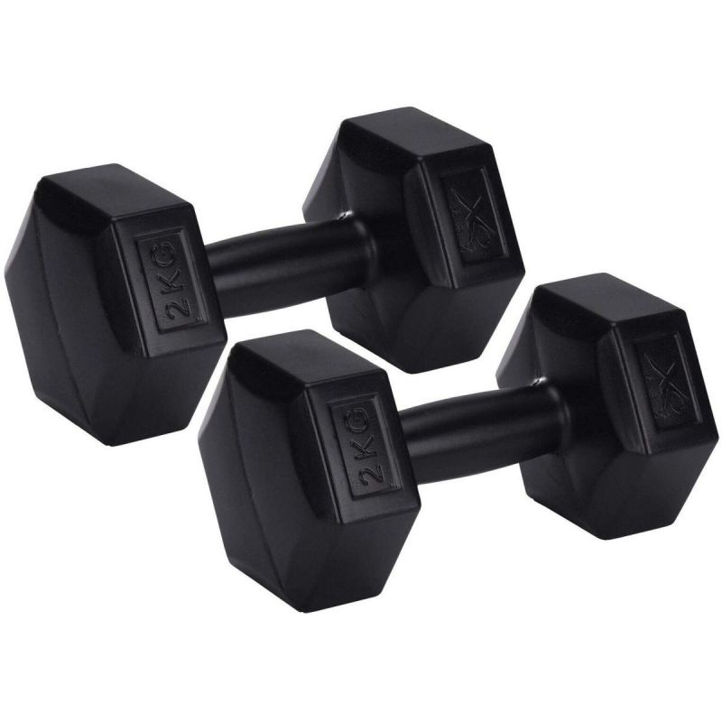 Die Hanteln verfügen über einen breiten, ergonomisch geformten Griff, der Reibung an den Händen verhindert und auch bei langen und anstrengenden Trainingseinheiten für hohen Komfort sorgt. Die sechseckige Form verhindert zudem, dass die Hanteln beim Abstellen auf dem Boden an Ort und Stelle bleiben.