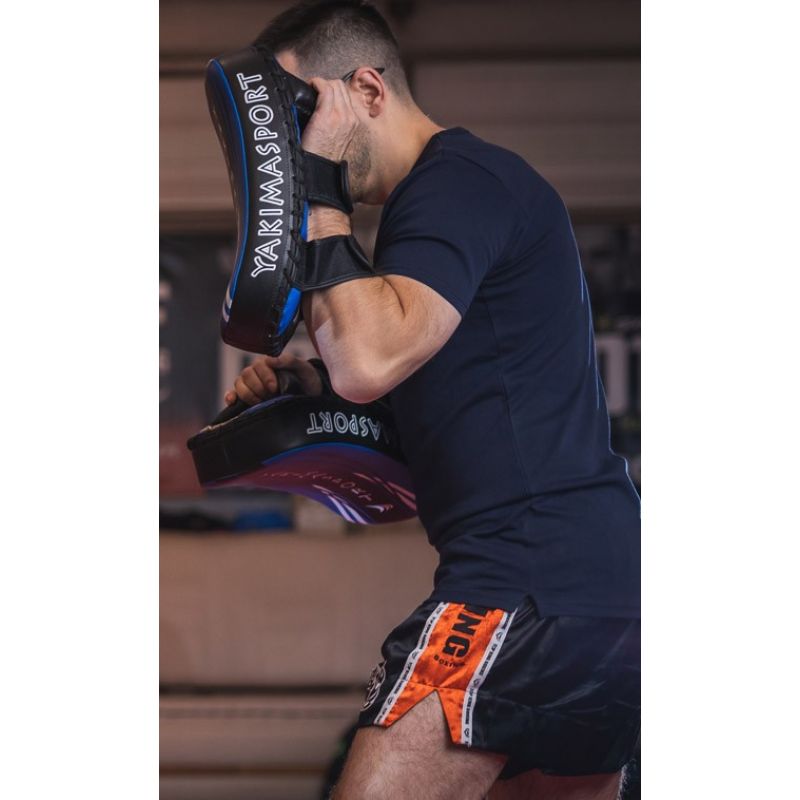 - Die Schilde sind leicht profiliert und passen sich durch ihre ergonomische Form optimal dem Unterarm des Trainierenden an, wodurch sie leichter in der richtigen Position gehalten werden können.