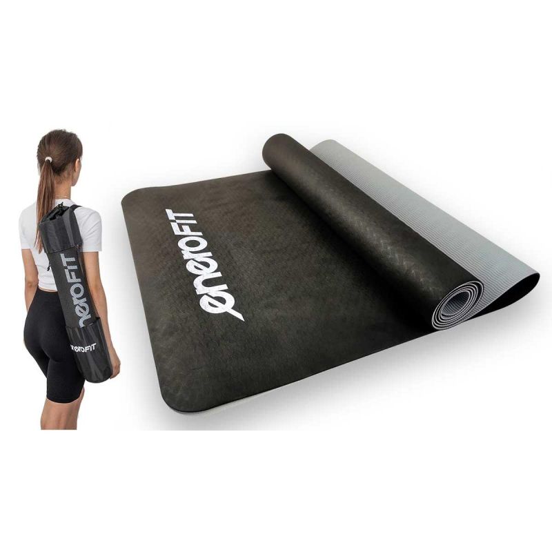 Yoga- und Fitnessmatte aus TPE, rutschfest, schwarz und grau, Enero Fit