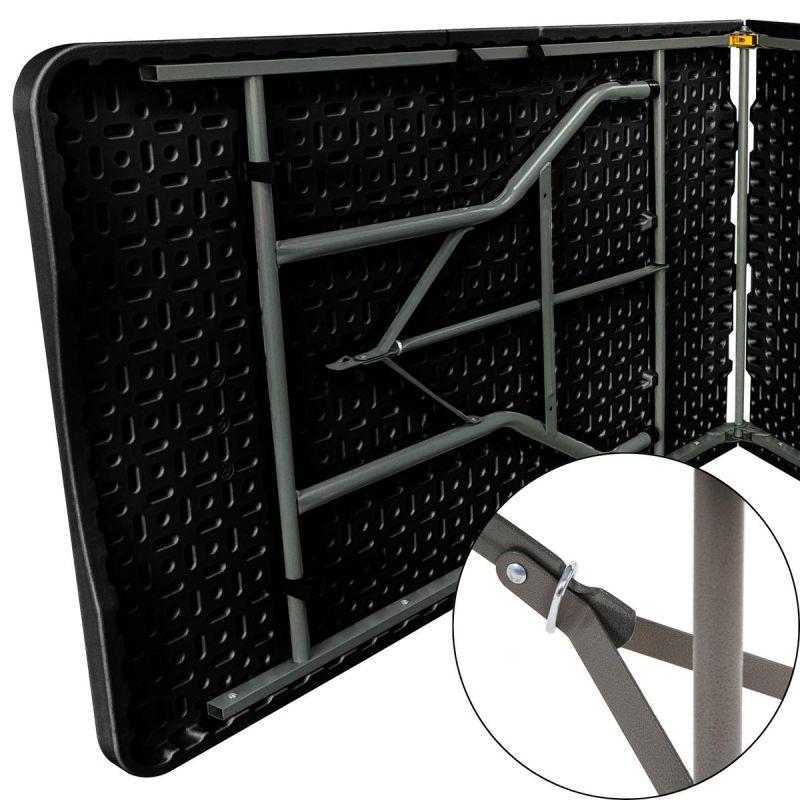 Suchen Sie einen robusten und tragbaren Tisch für Ihren Garten, Ihre Veranstaltung, Ihr Picknick oder Ihre Party? Der 180 x 70 cm große Klapptisch mit schwarzer Tischplatte von Saska Garden ist die ideale Lösung für alle, die Wert auf Funktionalität, Stabilität und schnellen Aufbau legen.